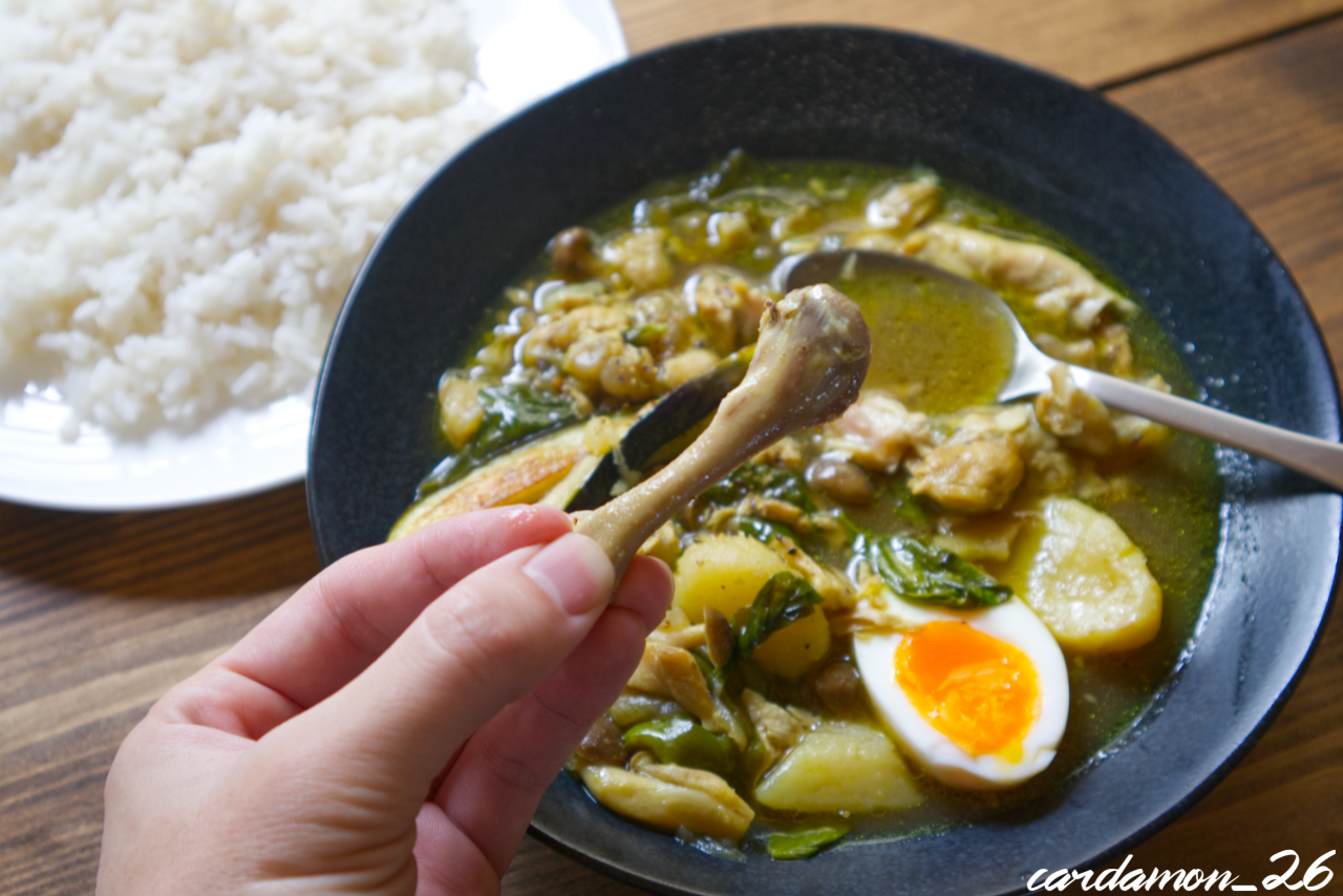 カレーにまみれた手羽元を手に取ってほじくらなくても、スプーンで突き崩すだけでホロホロと崩れます。軟骨も柔らかくてコリっとというよりもシャクっと……いや、もっと柔らかい!これが食べたくて圧力鍋を使ったまであります。