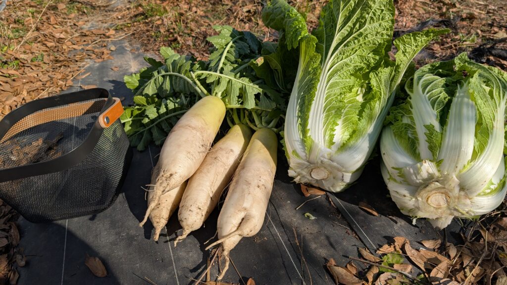 おでんの大根は畑から採ってきたもの。とても瑞々しく、煮るととても柔らかい。