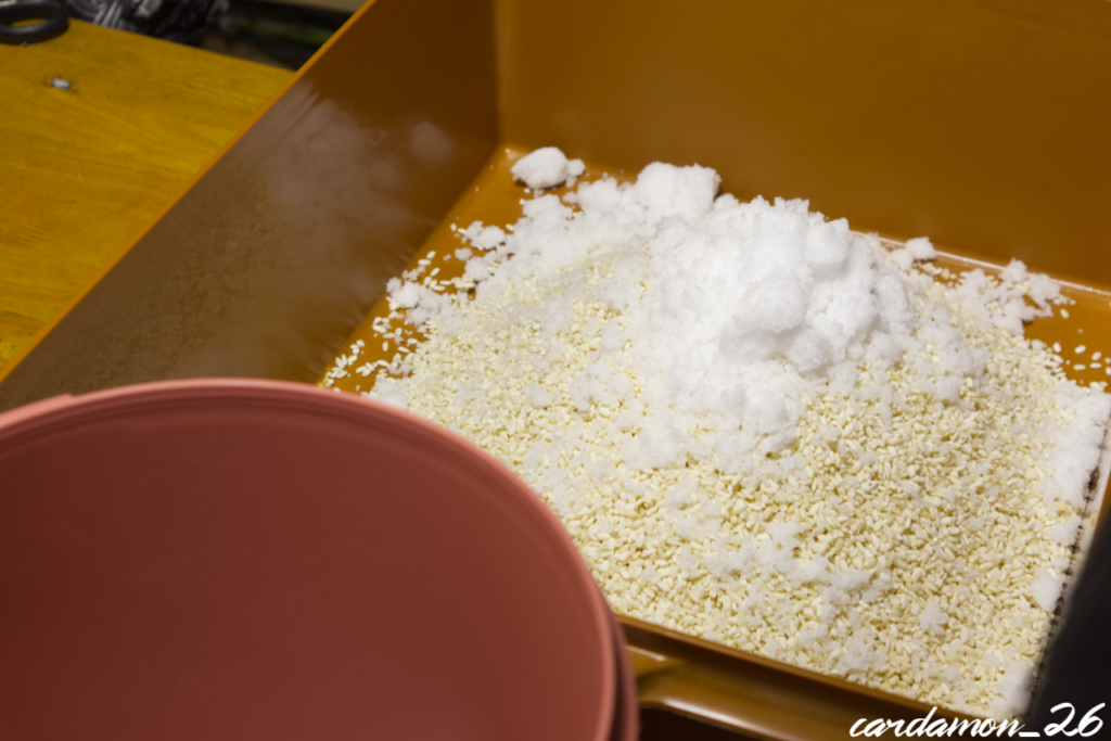 塩と米麹を混ぜておき、豆を受け入れる態勢を整えておく。