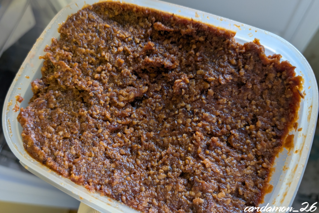 だいたい豆が冷め切っていない状態でここまで進むので、翌日朝には容器の中や容器のフタの裏にぴっちり水滴がついている。これは必ず確認して拭いておこう。なにせ、「正解は半年後」であるから、ここで失敗の素を放置してしまうと、取り返しのつかないことになる。豆の潰し具合も、米麹との混合も、「だいたいこんな感じでええやろ」と進んでいくが、容器内の水滴だけは慎重になったほうがいい。