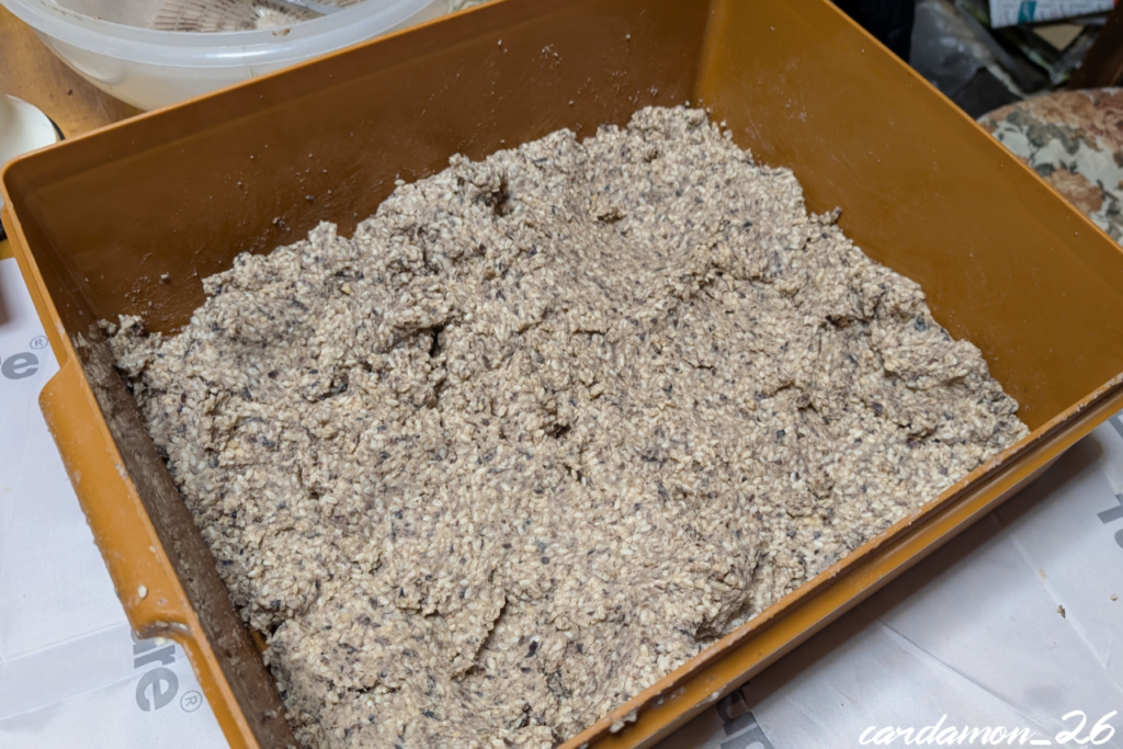 数えきれないほど味噌を作ってきて、周囲からも「味噌名人」の呼び声高い叔母の手引きによって、去年(2025)に引き続き、今年(2026)も味噌を仕込んできた。仕上がりはだいたい半年後。お盆の頃には、しっかりと茶色くなった味噌ができあがる。
