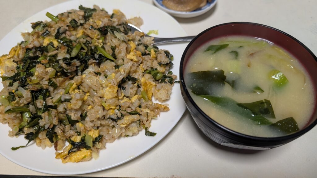 チャーハンのほうに具が入っているので味噌汁の具は控えめ。
