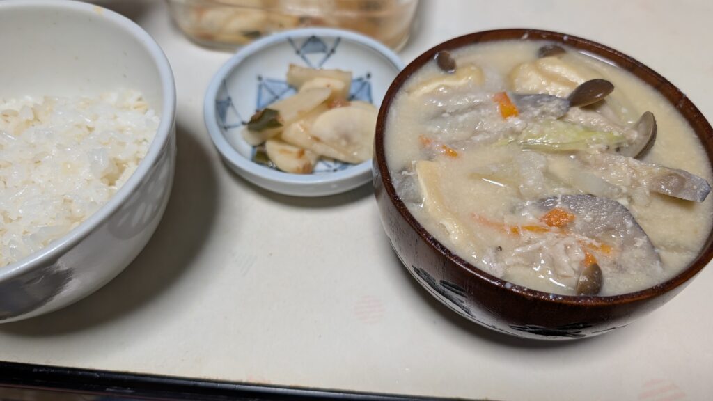 れんこん・しめじ入り粕汁