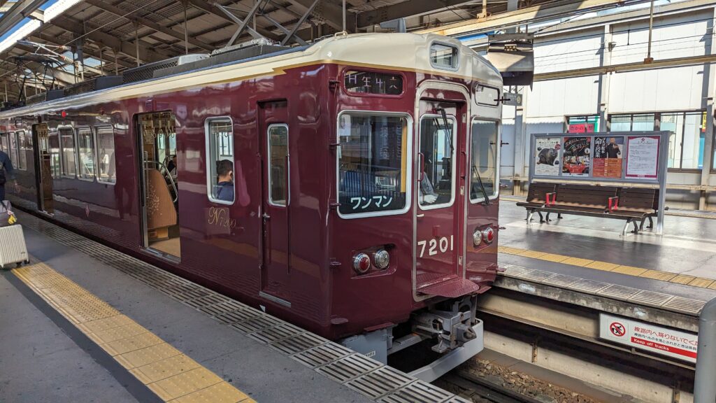 かくいう僕も、路線の違いによって採用している車両が微妙に違うことは認識している(座席がぜんぜん違う)が、どれが何番の電車か、なんていうのはまるで理解していない。あまり解像度が高いとはいえないだろう。ちなみにサムネイルにしているほか、下にも示した写真の、阪急電鉄に見える電車は姉妹線(なんて軽々にいうとファンの方に怒られるだろうが……)ともいえる「能勢電鉄」に譲渡されたものである。だが、あの色=かならずしも阪急電鉄ではないという事態は、ファンの方には申し訳ないが、そんなもん、どうでもいい……このようなことが世の中にはありふれている。
