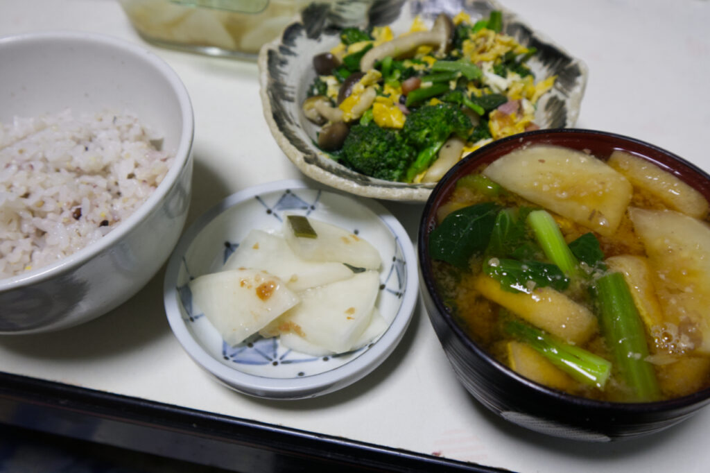 ブロッコリー・ベーコン・ぶなしめじ・ニラ・卵の炒め物